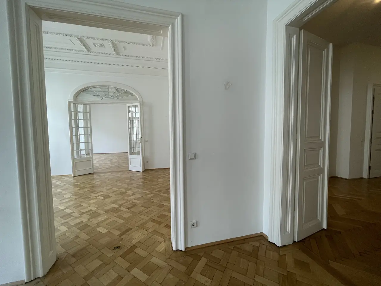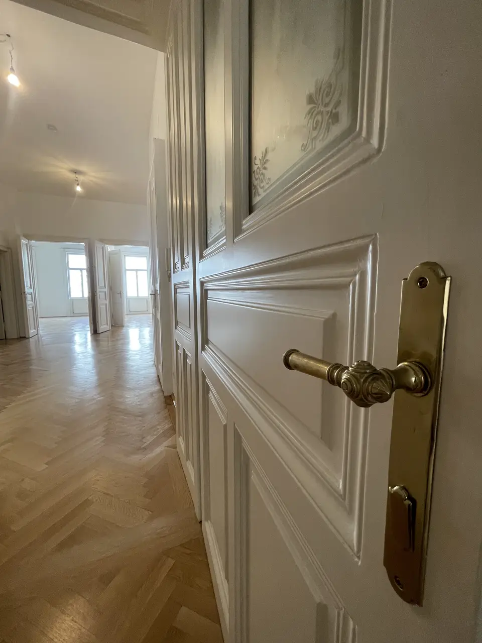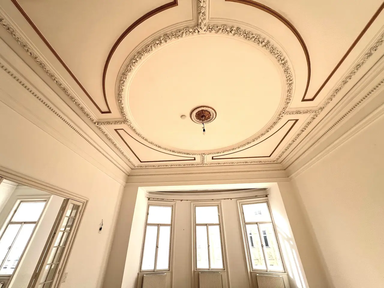 you are greeted by the graceful beauty of the historic rooms with their elaborate ceiling stucco and a ceiling height of almost 4 metres, an inviting entrance hall, the good old traditional doors and much more.