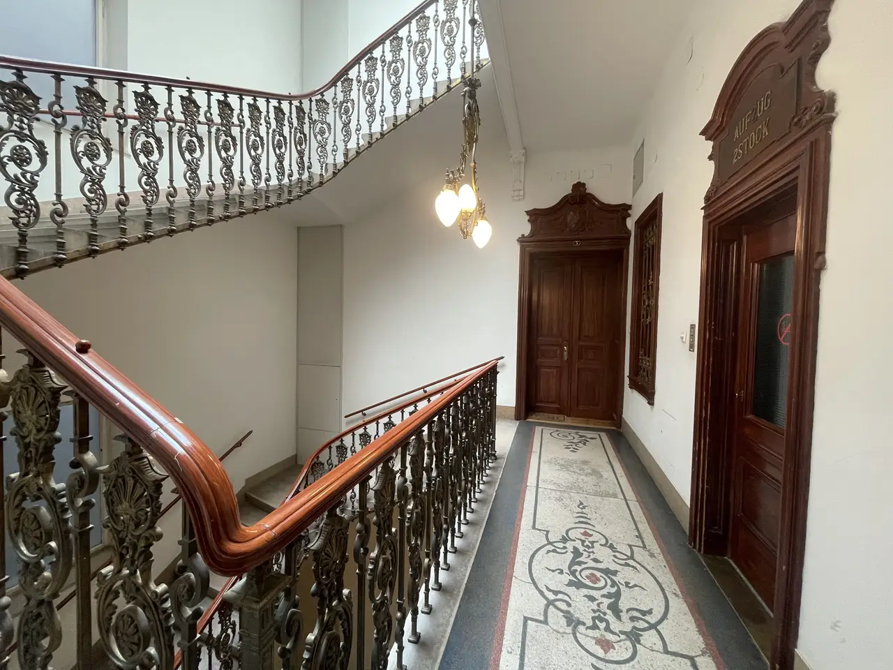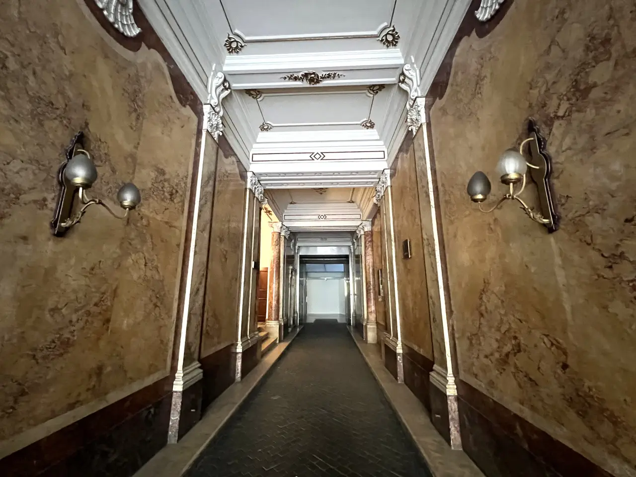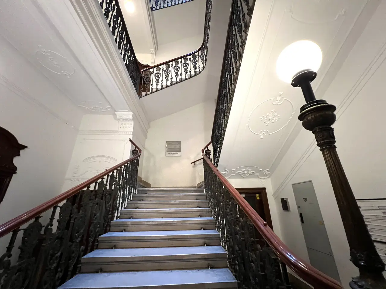 The façade is designed in the neo-baroque style. Marble walls and columns, as well as abundant stucco in the building entrance, an imposing staircase and a nostalgic lift leading to the upper floors.