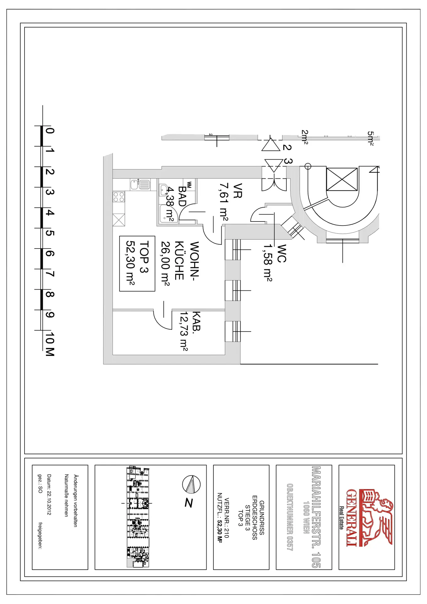 Die gegenständliche Wohnung ist ca. 52,3 m² groß, verfügt über 2 Zimmer und befindet sich in gutem Zustand.