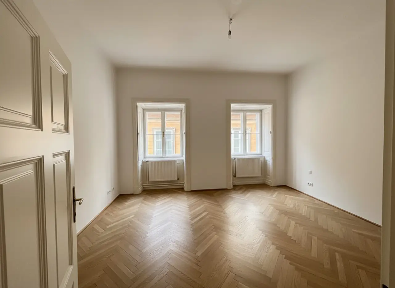 This modern apartment in an old-style building is located on the 4th floor of a prestigious house with a structured façade, which was built in 1794 by the renowned and then most famous architects Peter Mollner and Ernest Koch. Under the direction of the imperial and royal government architect Josef Klee, the classicist building was fundamentally renovated in 1831. In 1894, Assicurazione Generali finally purchased the commercial building.