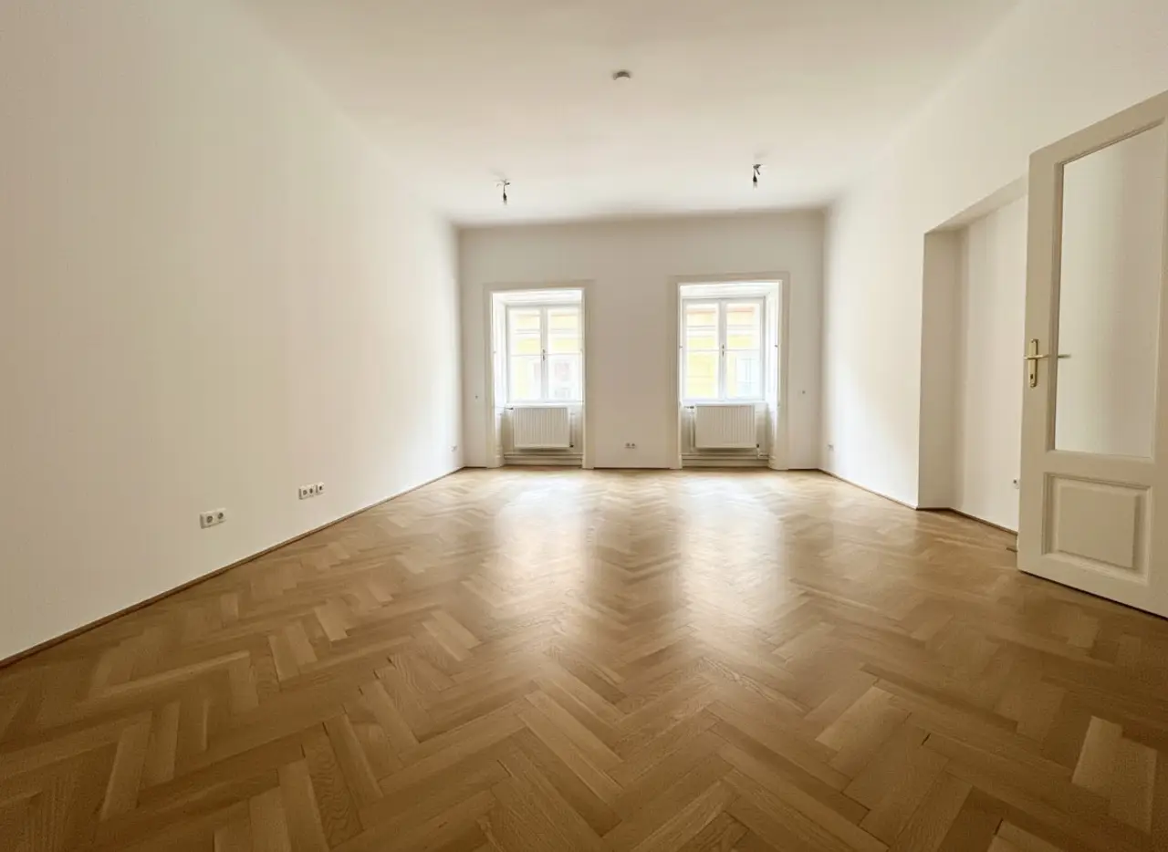 Diese moderne Altbau-Wohnung befindet sich im 4. Liftstock eines repräsentativen Gründerzeithauses mit gegliederter Fassade, welches im Jahr 1794 von den renommierten und damals bekanntesten Architekten Peter Mollner und Ernest Koch erbaut wurde. Unter der Leitung des kaiserlich-königlichen Regierungsbaumeisters Josef Klee wurde das klassizistische Gebäude bereits 1831 grundlegend umgebaut. 1894 schließlich kaufte die Assicurazione Generali das Geschäftshaus.