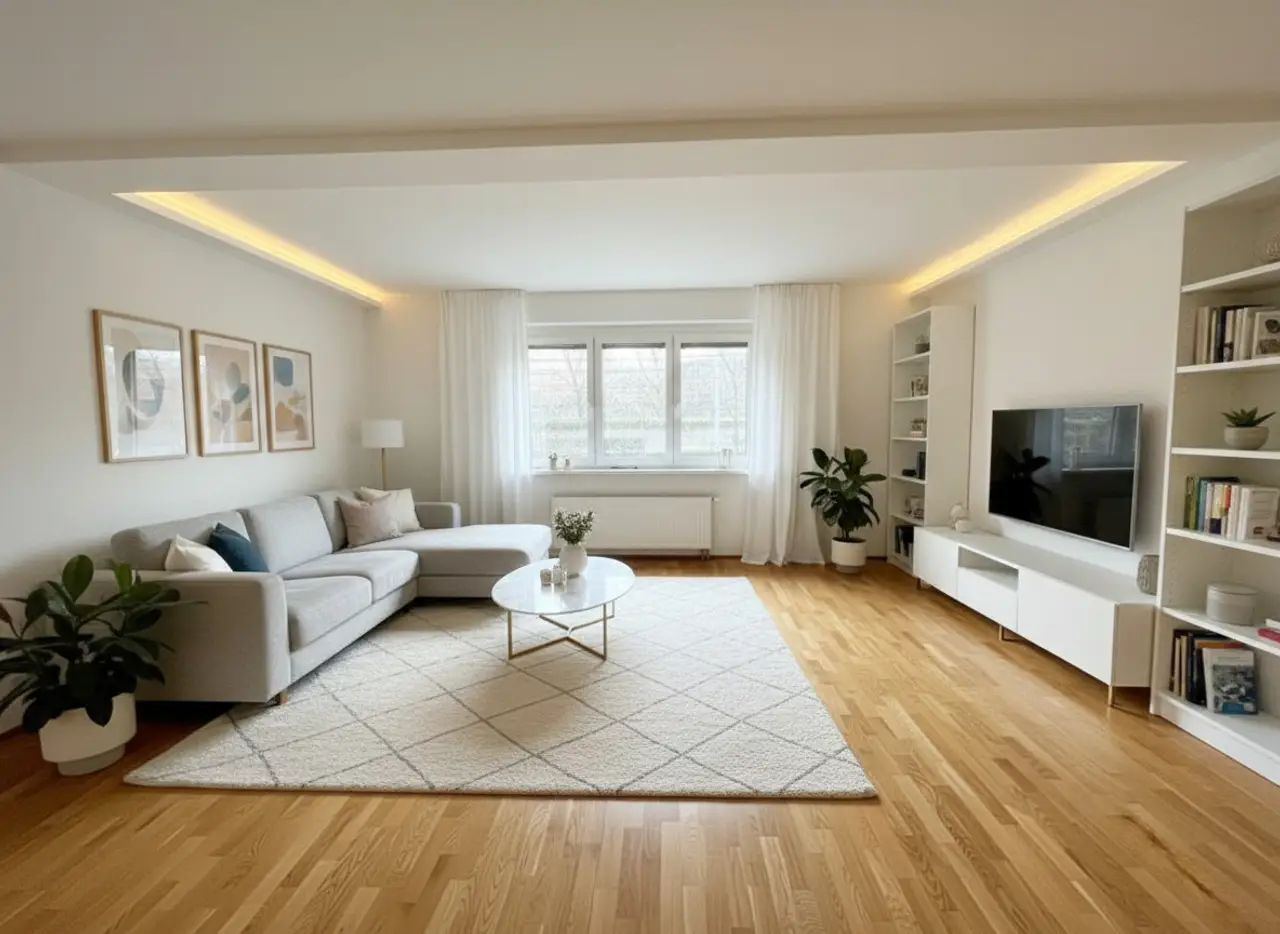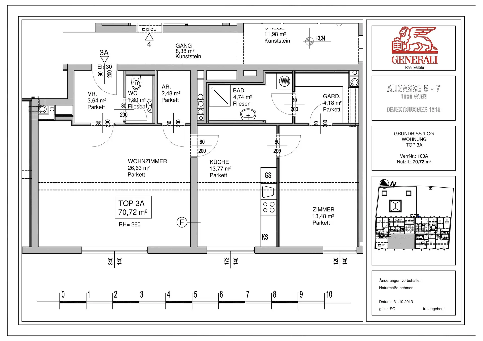 Sie liegt im 1. Liftstock und ist ca. 71 m² groß. Die Fenster sind mit Außenrollos ausgestattet.