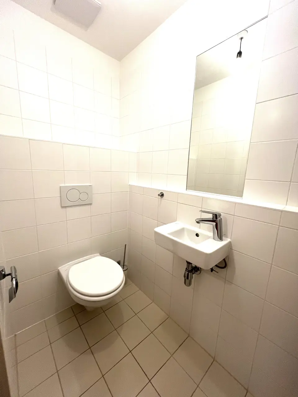 - Badezimmer mit Dusche, Waschbecken, WM-Anschlüsse