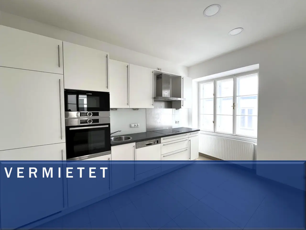 Die moderne und lichtdurchflutete Küche ist perfekt ausgestattet: